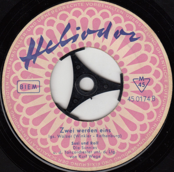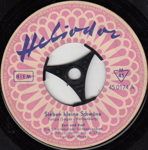 12 57....45 0174 A....Susi und Rolf Die Schöneberger Sängerknaben u. d. Tanzorchester unt. d. Ltg. von Kurt Wege..Sieben kleine Schwäne/ B....Susi und Rolf Die Sunnies u. d. Tanzorchester unt. d. Ltg. von Kurt Wege..Zwei werden eins