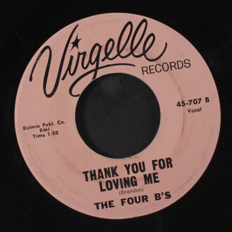 02.) Im Jahre 1959 gab es auch in Seattle, Washington, The Four B’s, über die ich vorerst nichts herausfinden konnte. Ihre Single: VIRGELLE ?? 59....45-707 A....THE FOUR B'S Don't Tell Me Lies/ B....Thank You For Loving Me