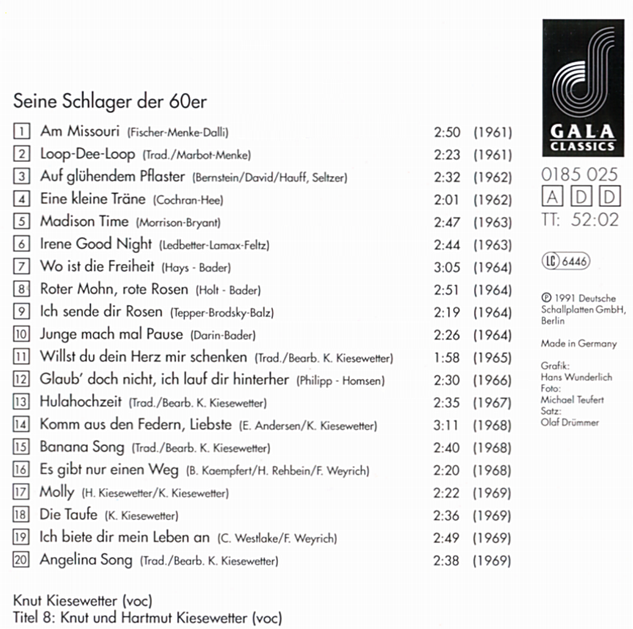 Am Missouri (Oktober 1961, D #24) und Nur eine kleine Träne von dir (Juli 1962, D #38).