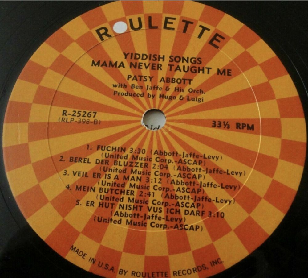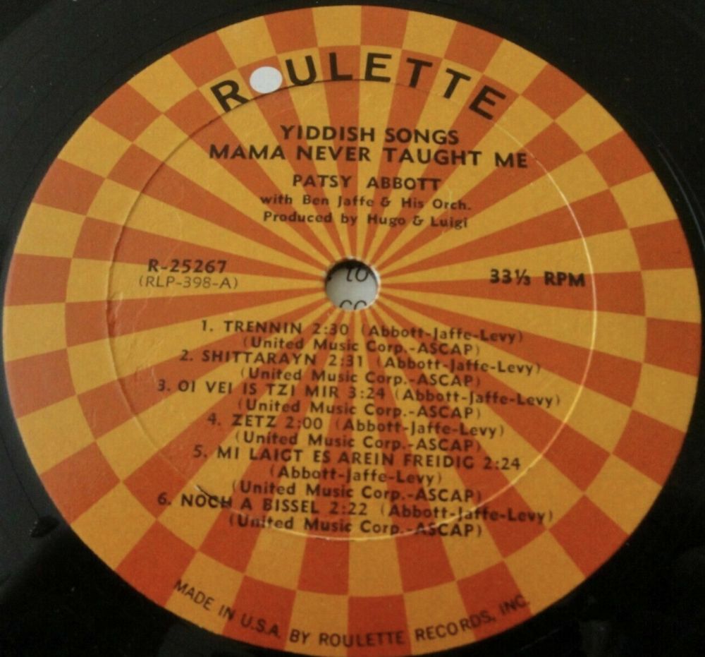 ROULETTE R 25267 "Yiddish Songs Mama Never Taught Me" aus dem Jahre 1964