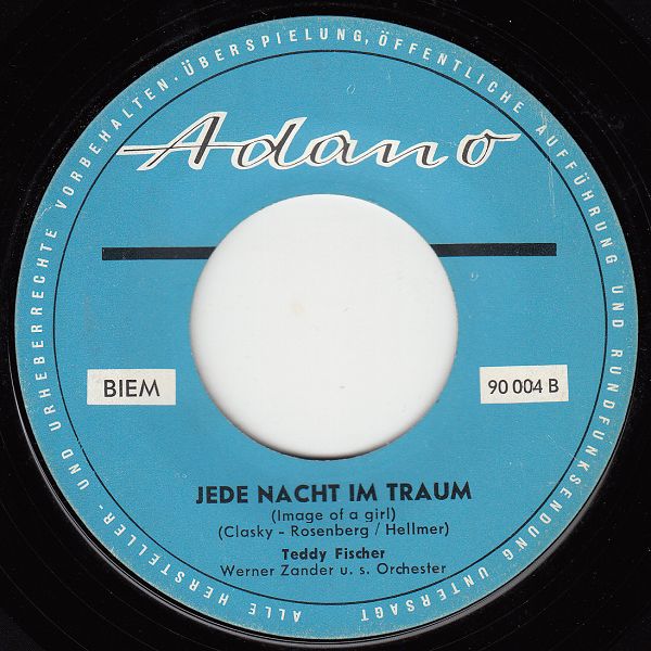Ich hoffe, ich mache nicht wieder Probleme wegen Teddy Fischer, von dem ich nichts biographisches finden konnte und von dem ich nur eine einzige Single kenne und die ist bereits zur Hälfte in unserem Forum vertreten, da die B-Seite dieser Single eine wunderbare Coverversion von "Image of a Girl" aufweist. Ich kann mir daher nicht vorstellen, dass es von ihm nichts weiteres gibt, vielleicht unter einem anderen Namen?