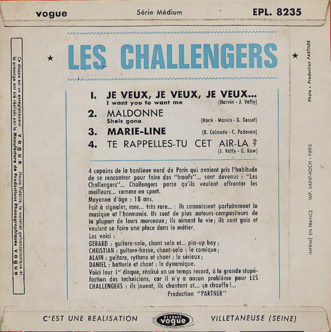 Les Challengers = Daniel Bodon - Christian Padovan - Alain Delaby - Gerard Kawczynski
