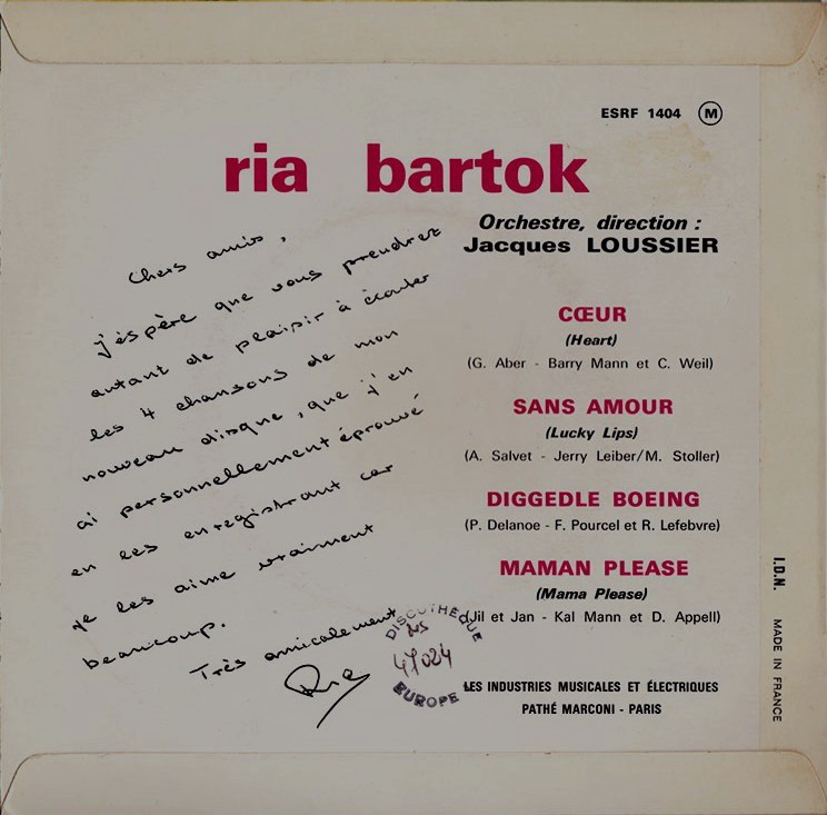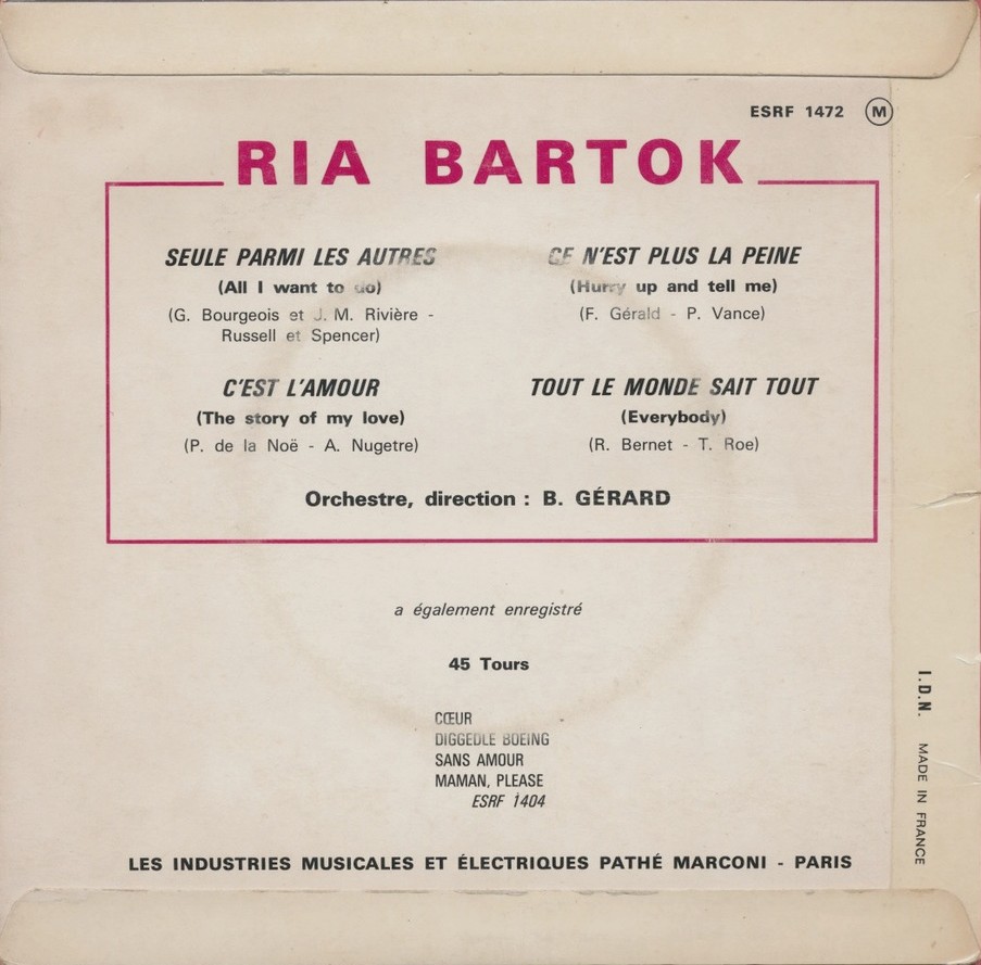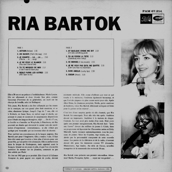 Marie-Louise Pleiss, stage name Ria Bartok (Einbeck, 28 January 1943 - 2 March 1970) kam durch