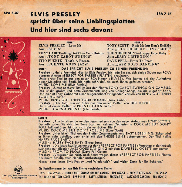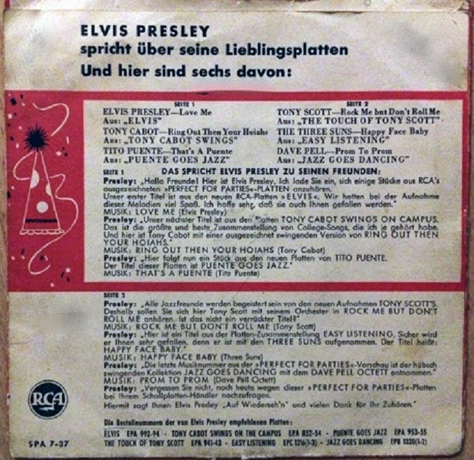 Betreff : Deutsche Ep `Perfect For Parties ` die gesuchte Deutsch Super EP , RCa - SPA 7-37.