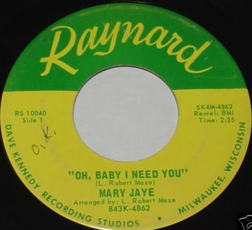 MARY JAYE war kurz auf Raynard Records mit "Oh Baby I Need You"