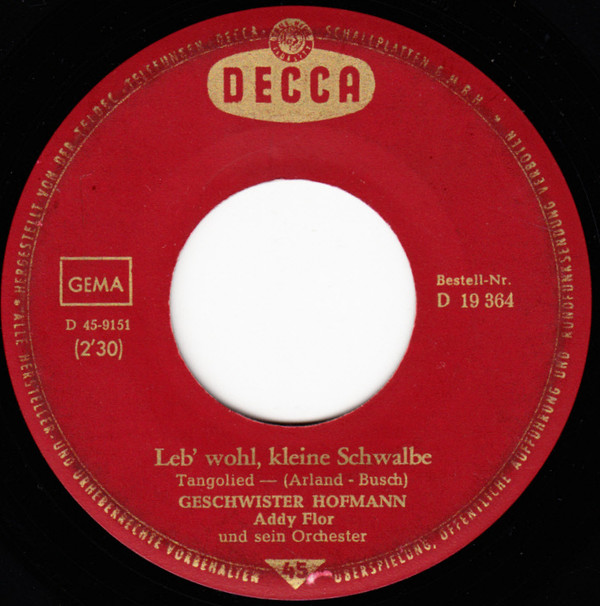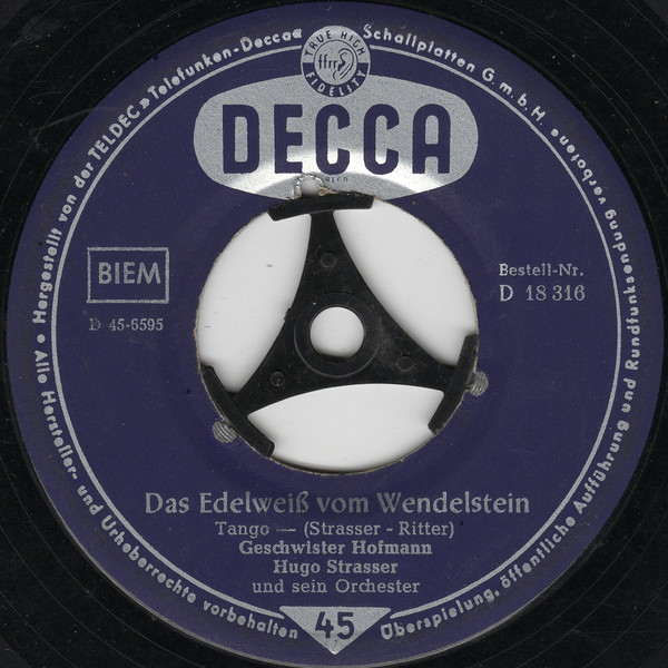 ab 1955-62 sehr viele Schallplatten für Decca u. Telefunken (1955/56) u.a. auch unter dem Pseudonym Das HEIDELBERG-DUO (2 Schallplatten), Elite Special, Amiga,