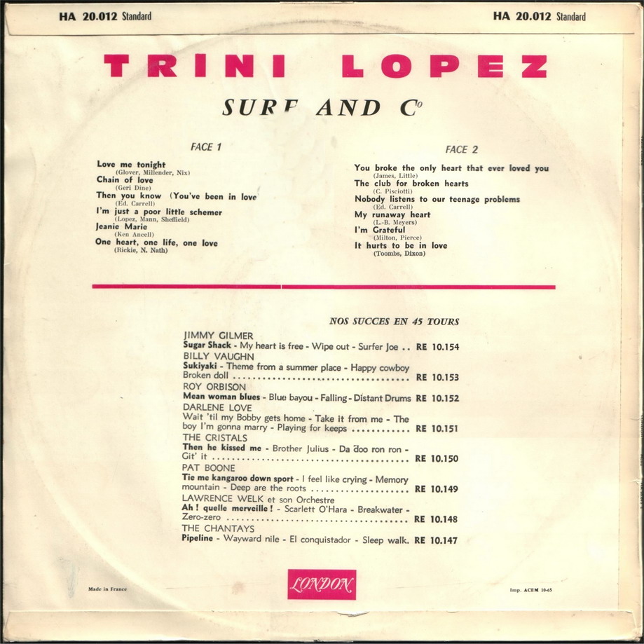 hier passend zu den beiden deutschen London-LPs von Trini Lopez, hier eine deutsche London-Single mit Cover. FREU.