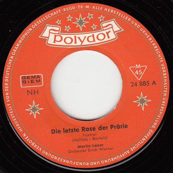11 62....24 885 A....Martin Lauer Orchester Erich Werner..Die letzte Rose der Prärie/ B....Martin Lauer Orchester Hagen Galatis..Die blauen Berge (Wolverton Mountain)
