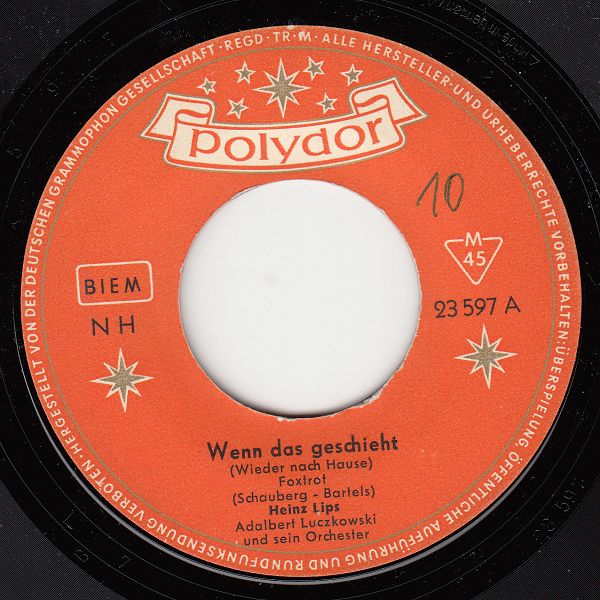 12 57....23 597 A....Heinz Lips Adalbert Luczkowski und sein Orchester..Wenn das geschieht (Wieder nach Hause)/ B....Heinz Lips Orchester Kurt Edelhagen..O Jonathan