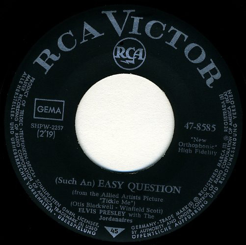 Ich dachte mir, eine Single vom Mai 1965 passt nicht besonders gut in die Rocknroll-Ära, die Hardi sowieso bereits bis 1963 ausgeweitet hat, aber . . . dann entdeckte ich die LP "Pot Luck", mit der der Titel "(Such an) Easy Question" bereits im Juni 1962 erstmals veröffentlicht wurde.