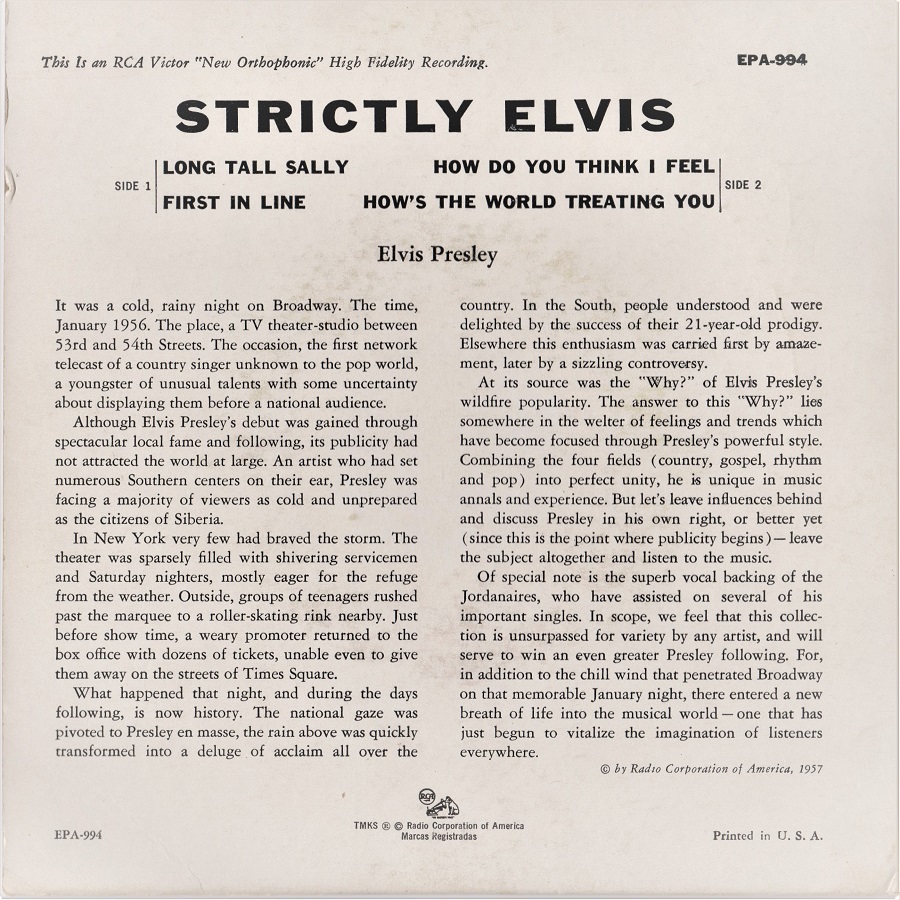 Die US Ausgabe Strictly Elvis von 1956 (EPA-994) Erstauflage Dog On Top mit Silver Lines.