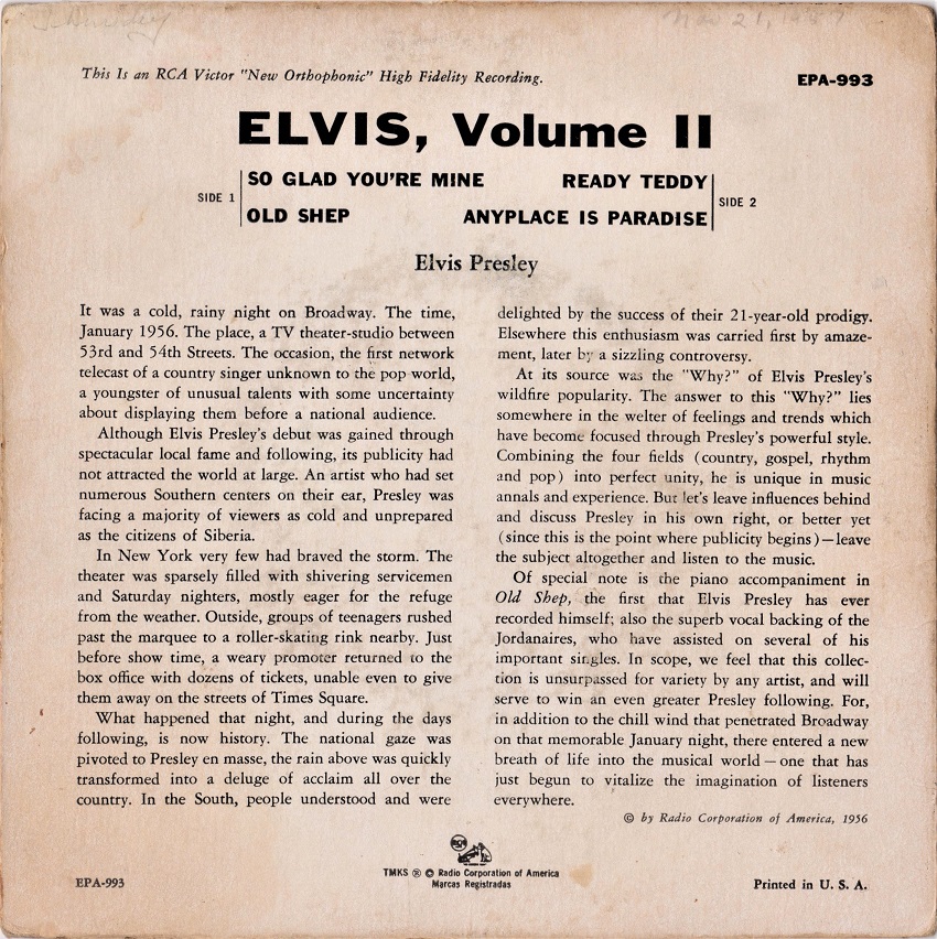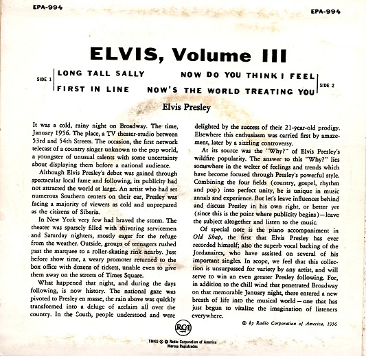 Elvis von der Seite-EPA-992, 993 und der 2. Elvis LP - LPM-1382, Deutsche Auflage, alle 3 EP´S und der LP ein Elvis von der Seite.