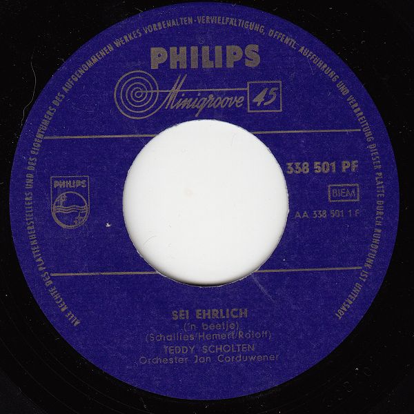 05 59....338 501 PF....TEDDY SCHOLTEN Orchester Jan Corduwener..Sei ehrlich ('n beetje)/Orchester Jack Bulterman..Sing, Little Birdie