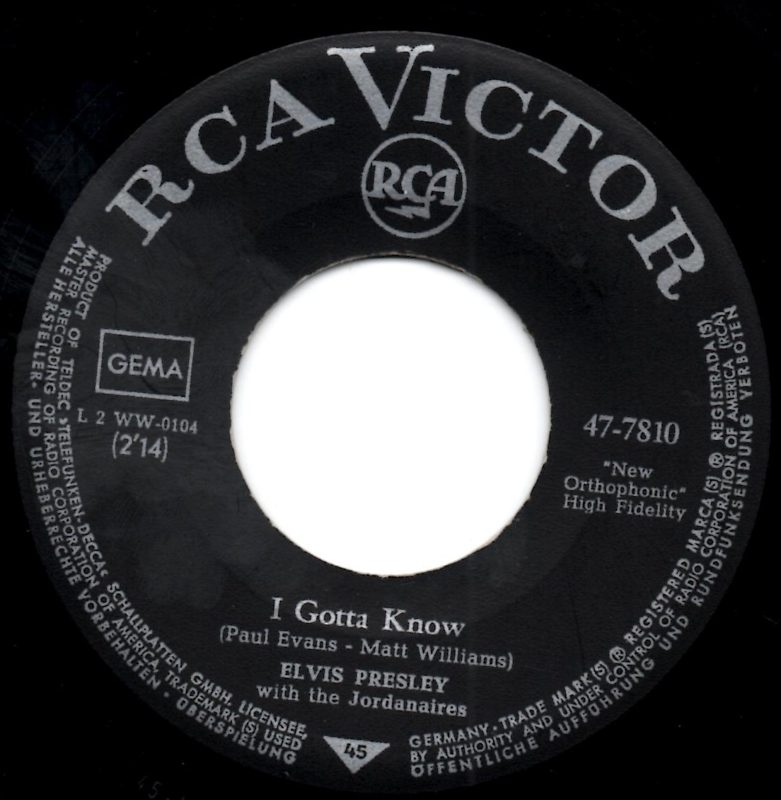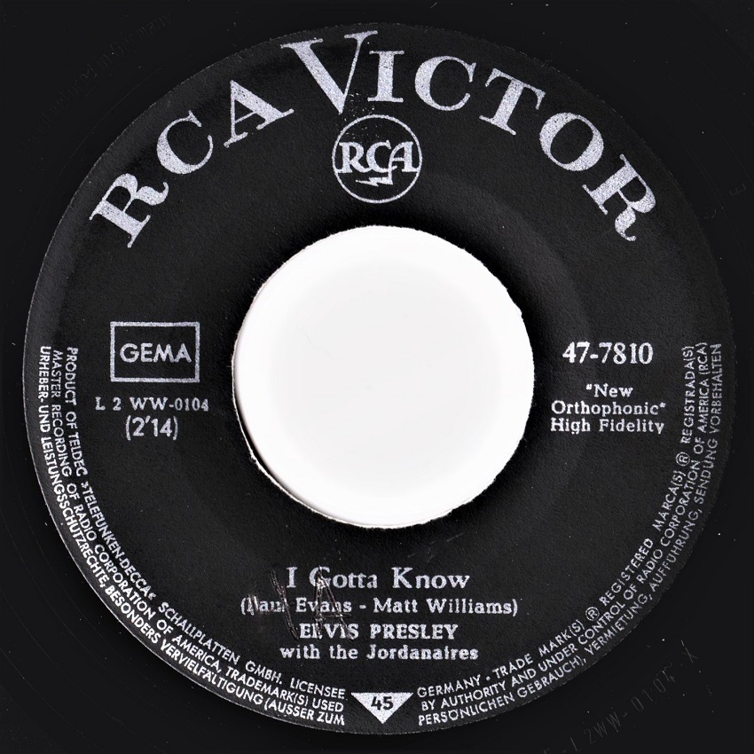 Are You Lonsome Tonight? V2 und I Gotta Know in V3 47-7810!