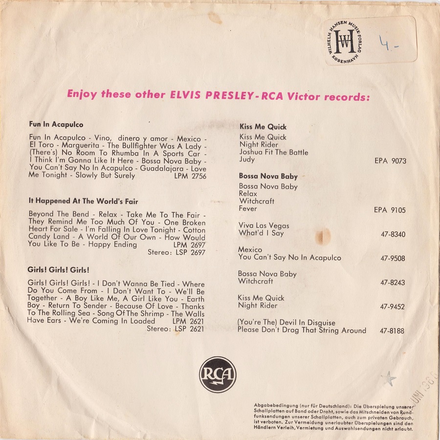 Santa Bring My Baby Back und Santa Claus Is Back In Town in der Wiederveröffentlichung der 1957er aufgenommenen Platte.