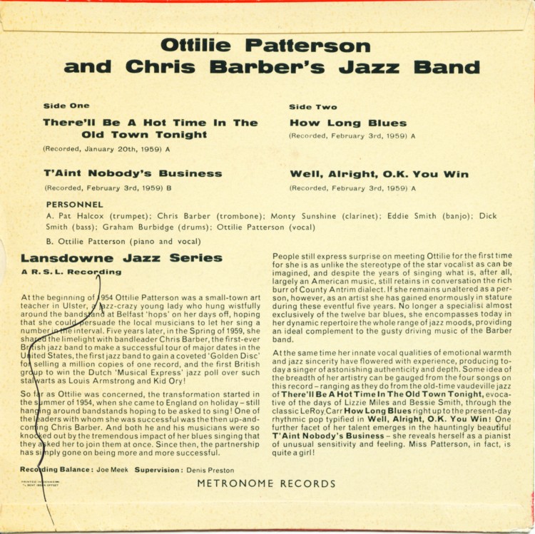 Zu deiner Frage "sind noch weitere Singles erschienen?" habe ich versucht, sämtliche von Chris Barber bei uns erschienenen Singles bis Anfang 1963 in einer Single-Disco zu erfassen. Ergänzungen und auch Korrekturen sind willkommen: