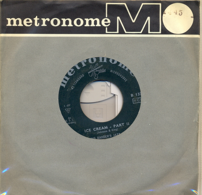 ?? 55....A 45000....CHRIS BARBER'S JAZZBAND Pat Halcox, tp, vo; Lonnie Donegan, bjo; Jim Bray, b; Chris Barber, tb; Monty Sunshine, cl; Ron Bowden, dm. Rec. 9-10-55 Ice Cream/CHRIS BARBER'S JAZZBAND Chris Barber, tb, vo; Lonnie Donegan, bjo; Jim Bray, b; Pat Halcox, tp; Monty Sunshine, cl; Ron Bowden, dm. Rec. 9-10-55 Down By The Riverside