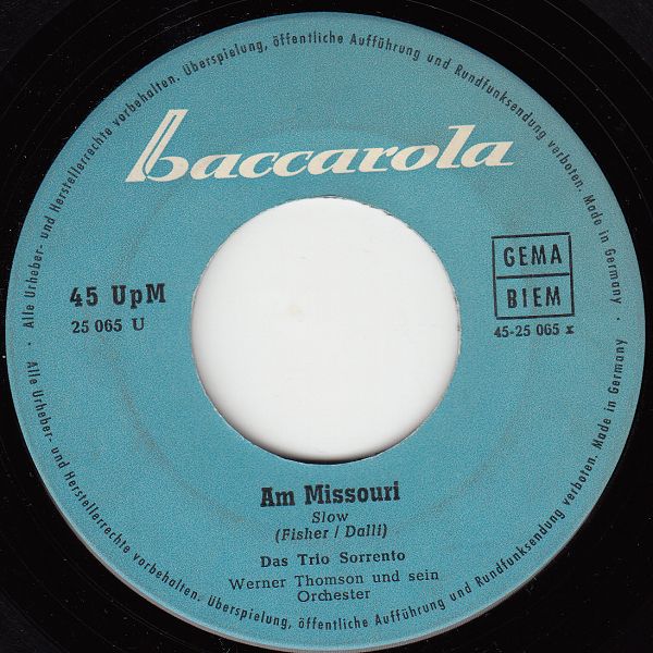 11 61....25 065 U....Das Trio Sorrento Werner Thomson und sein Orchester..Am Missouri/Das Trio Sorrento und die Regina-Girls Werner Thomson und sein Orchester..Oh Billy, Billy Balck