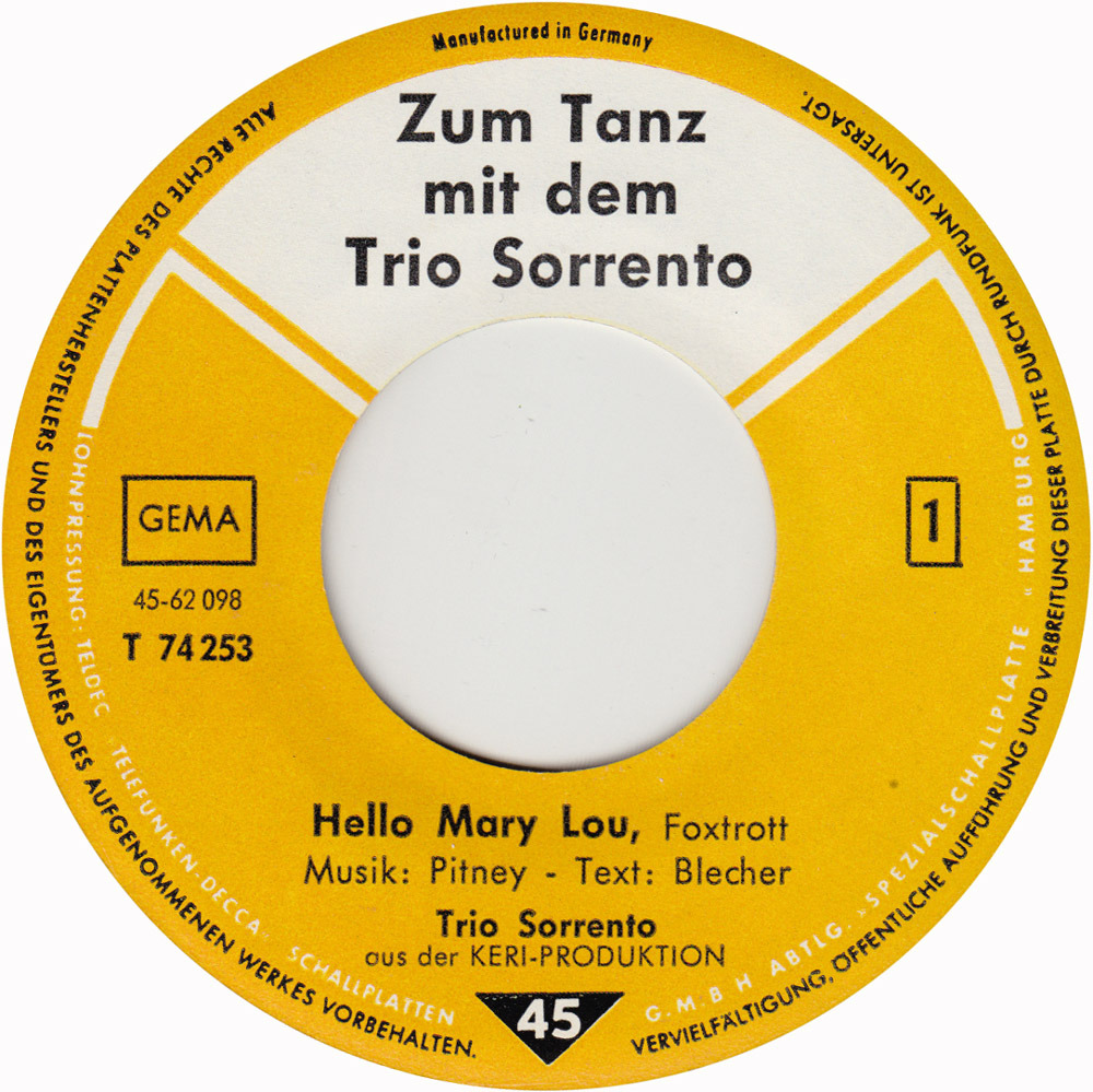 ?? 61....T 74 253....Zum Tanz mit dem Trio Sorrento Trio Sorrento aus der KERI PRODUKTION..Hello Mary Lou/Geh'n sie doch zu . . . ,