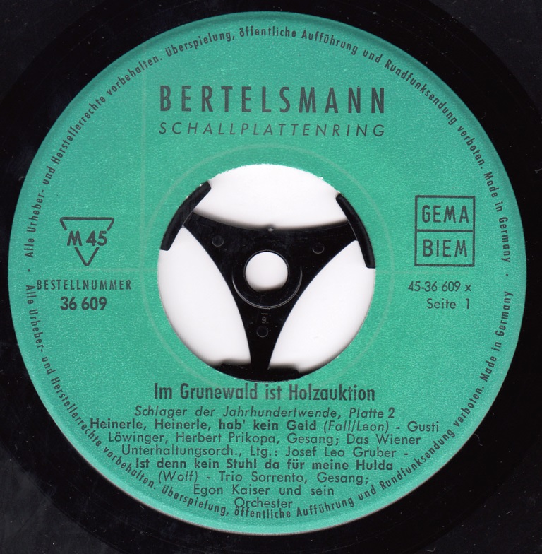 02 62....45 293 A....Trio Sorrento Werner Thomson und sein Orchester..Ein Glas wirkt Wunder/Die Penny-Pipers Ferdy Klein und sein Stimmungsorchester..Jetzt nehmen wir noch 'nen Schluck