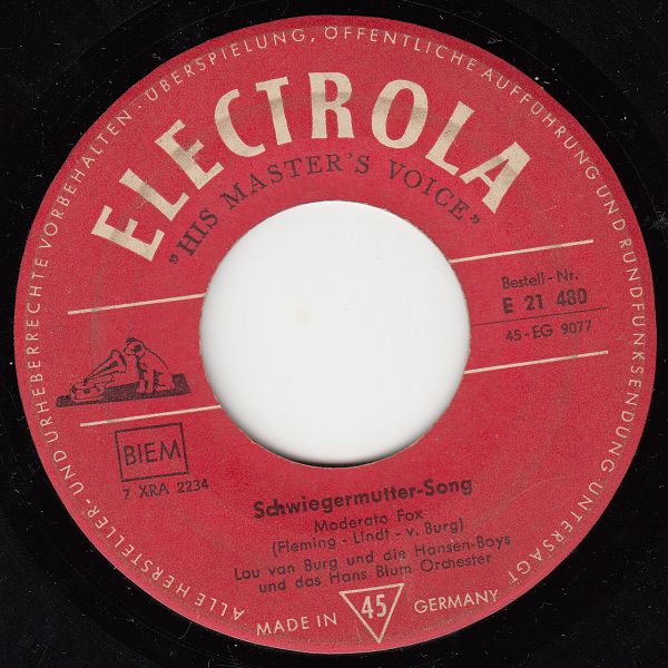 07 60....E 21 480....Lou van Burg und die Hansen-Boys und das Hans Blum Orchester..Schwiegermutter-Song/Freunde fürs Leben (Down by the riverside)