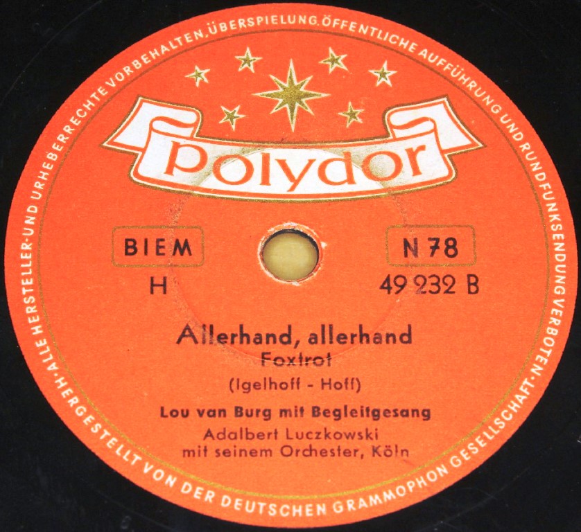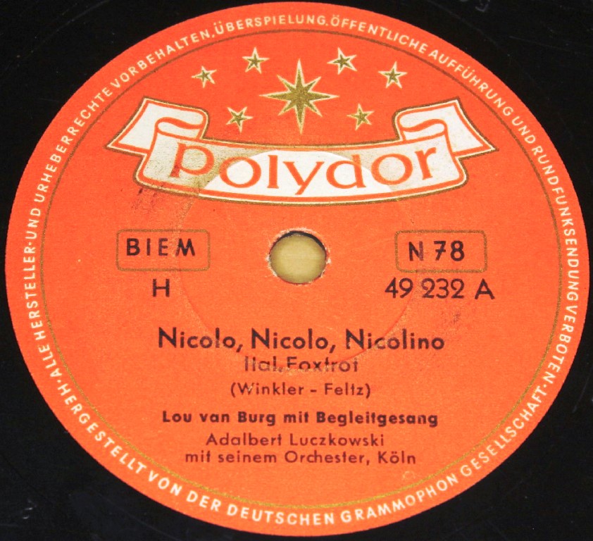 06 54....22 232 A....Lou van Burg mit Begleitgesang Adalbert Luczkowski mit seinem Orchester, Köln..Nicolo, Nicolo, Nicolino/ B....Allerhand, allerhand