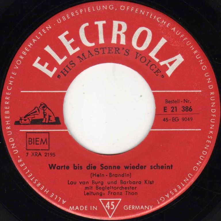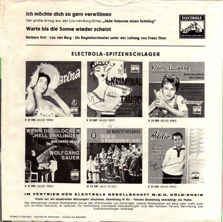 01 60....E 21 386....Lou van Burg und Barbara Kist mit Begleitorchester Leitung: Franz Thon..Warte bis die Sonne wieder scheint/Ich möchte dich so gern verwöhnen