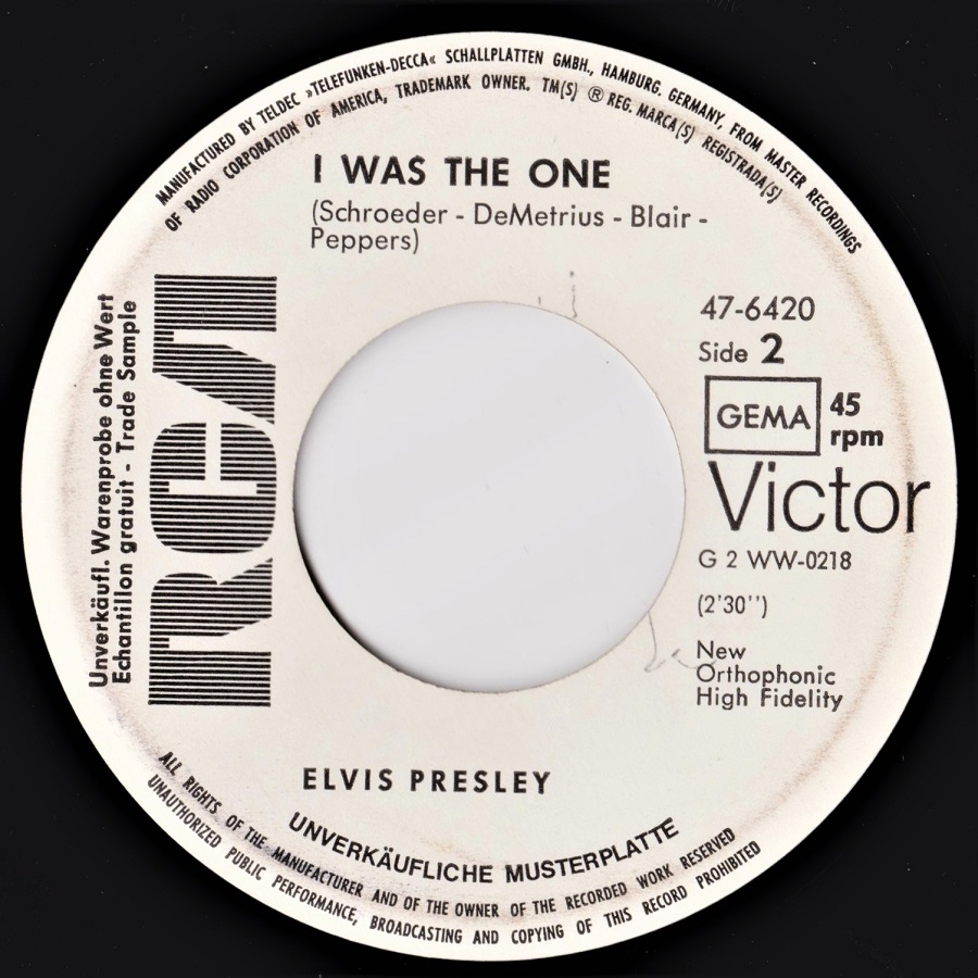 47-6420 (Heartbreak Hotel / I Was The One) Promo in w1