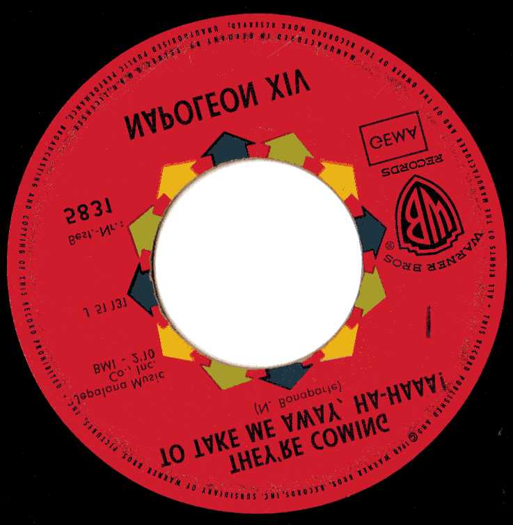 Ich möchte mal versuchen einen kleinen Anfang mit der Platte von Napoleon XIV - They`re coming to take me away, Ha-haaa! - zu machen die auf Warner Brothers 5831 erschienen ist. Zugegeben die Platte ist erst 1966 eingespielt worden, passt meiner Meinung nach jedoch viel besser ins Forum als manche anderen einegestellten Platten.
