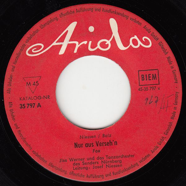 ?? 59....35 797 A....Jlse Werner und das Tanzorchester des Senders Nürnberg Leitung: Josef Niessen..Nur aus Verseh'n/Ein glückliches Mädchen