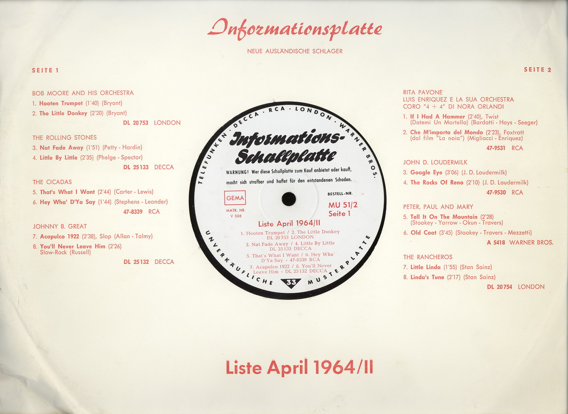 auch auf den Teldec Informations-Schallplatten sind die Stones vertreten. Ich konnte allerdings erst Platten ab 1965 mit der Gruppe feststellen: :idea: