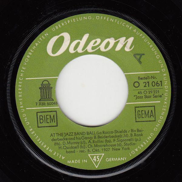 03 59....O 21 061....Bix Beiderbecke and his Gang: B. Beiderbecke(c, ld), B. Rank (tb), D. Murray (cl), A. Rollini (bs), F. Signorelli (p), H. Quicksell (bj), Ch. Moorehouse (d), Studioband - rec. 5. Okt. 1927 New York..ROYAL GARDEN BLUES/AT THE JAZZ BAND BALL