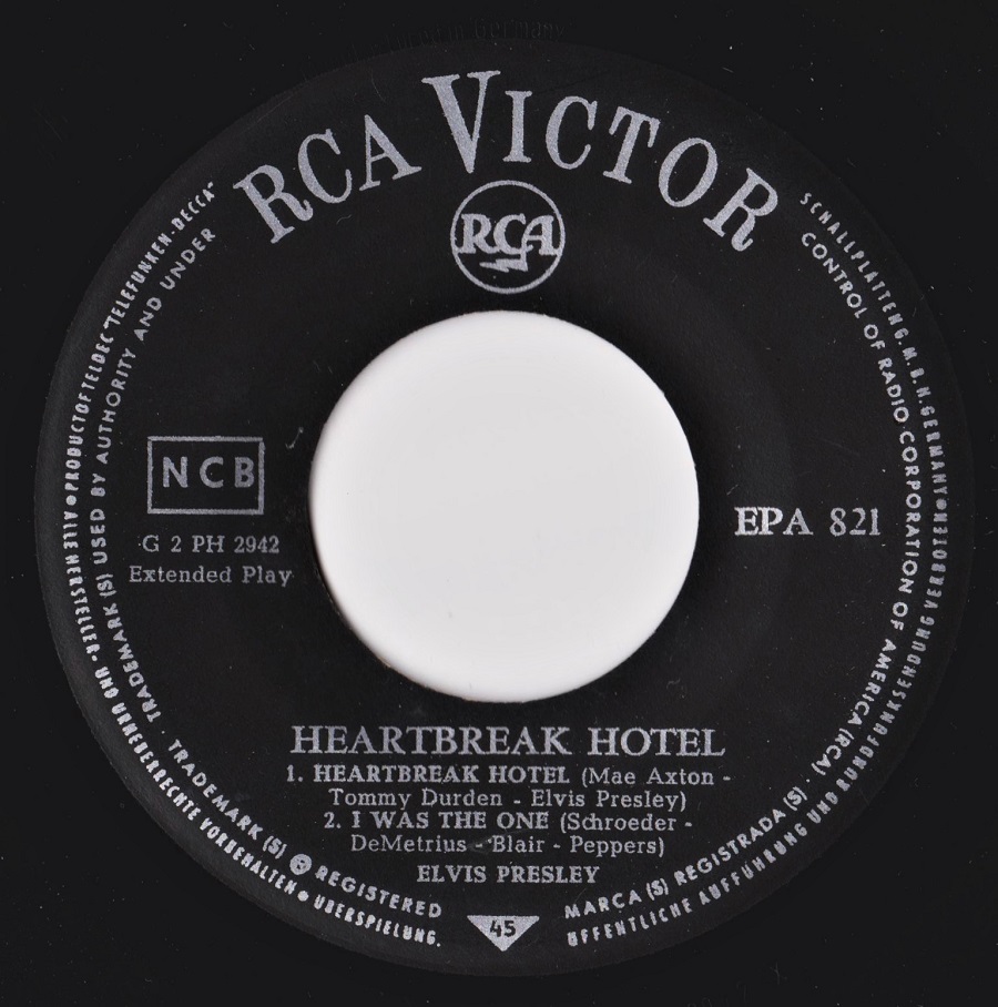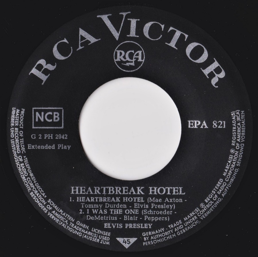EPA-821 Heartbreak Hotel, leider ist das Cover und die Labels der Single nicht mehr das was es einmal war.