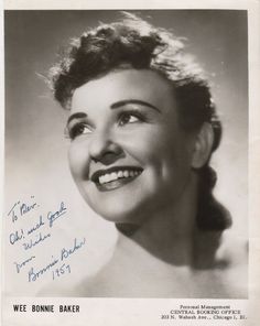 Die zierliche Big-Band-Sängerin "Wee" Bonnie Baker, * April 1, 1917 in Orange/Texas, + August 11, 1990 (age 73) in Fort Lauderdale/Florida ist heute vor allem als Sängerin des Orrin-Tucker-Hits “Oh Johnny, Oh Johnny, Oh!“ aus dem Jahr 1939 in Erinnerung geblieben.