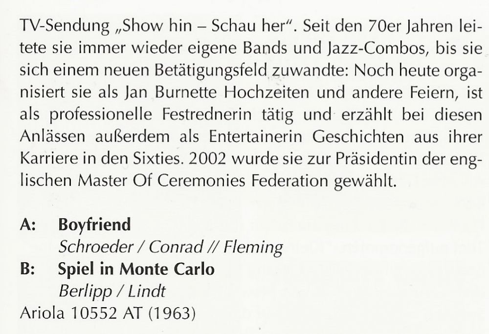 JAN BURNETTE, die auch schon mal 'BURNNETTE' geschrieben wurde,