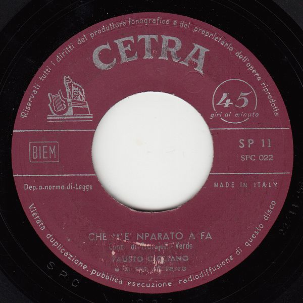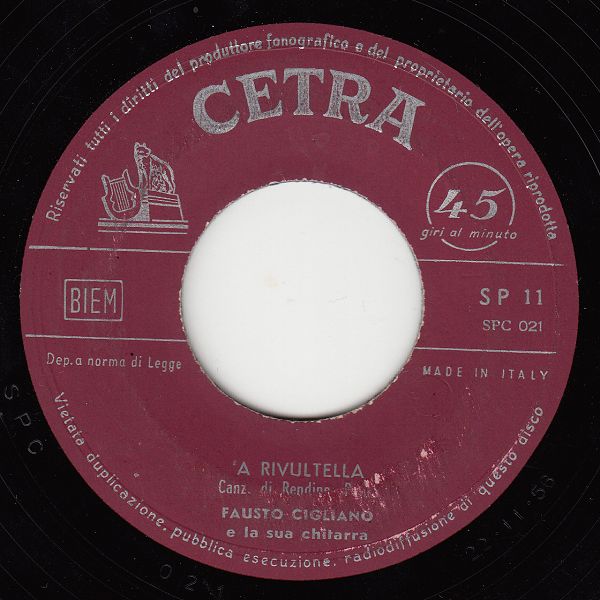 11 56....SP 11....FAUSTO CIGLIANO e la sua chitarra..'A rivultella (SPC 021)/Che m'e' nparato a fa (SPC 022)