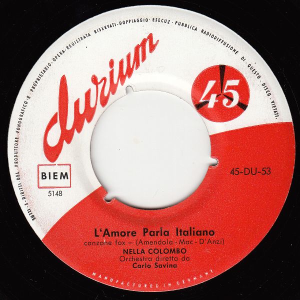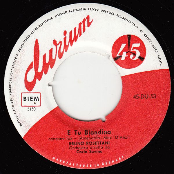 ?? 58....45-DU-53....BRUNO ROSETTANI Orchestra diretta da Carlo Savina..E Tu Biondina/NELLA COLOMBO Orchestra diretta da Carlo Savina..L'Amore Parla Italiano (I: DURIUM ??? )