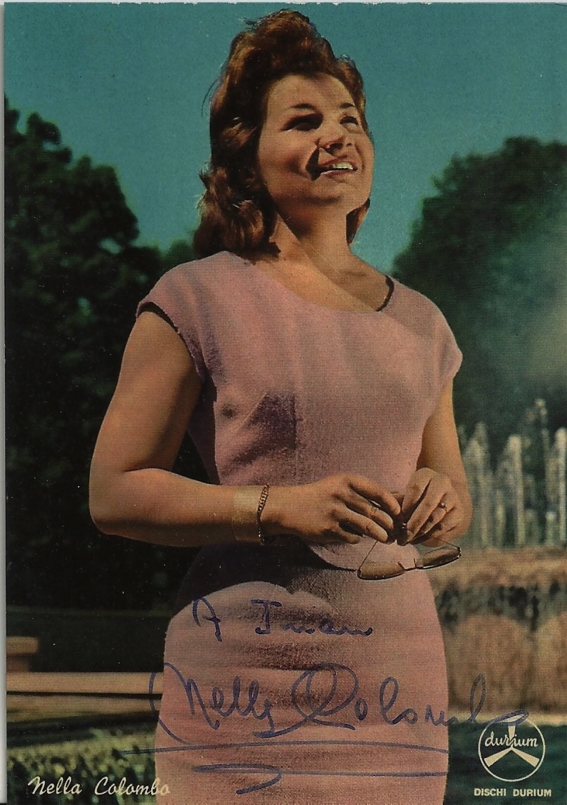 Die Sängerin und Schauspielerin Nella Colombo wurde am 18. Jänner 1927 in Cusano Milanino, Lombardei, Italien, geboren und verstarb am 4. Oktober 1999 in Turin, Piemont, Italien, wo sie auch aufwuchs und den größten Teil ihres Lebens verbrachte. Ihre ersten Schellacks dürfte es vermutlich bereits im Jahre 1945 gegeben haben. Durch ihre Cover-Version von Lys Assia's "Giorgio", wurde sie auch bei uns etwas bekannter.