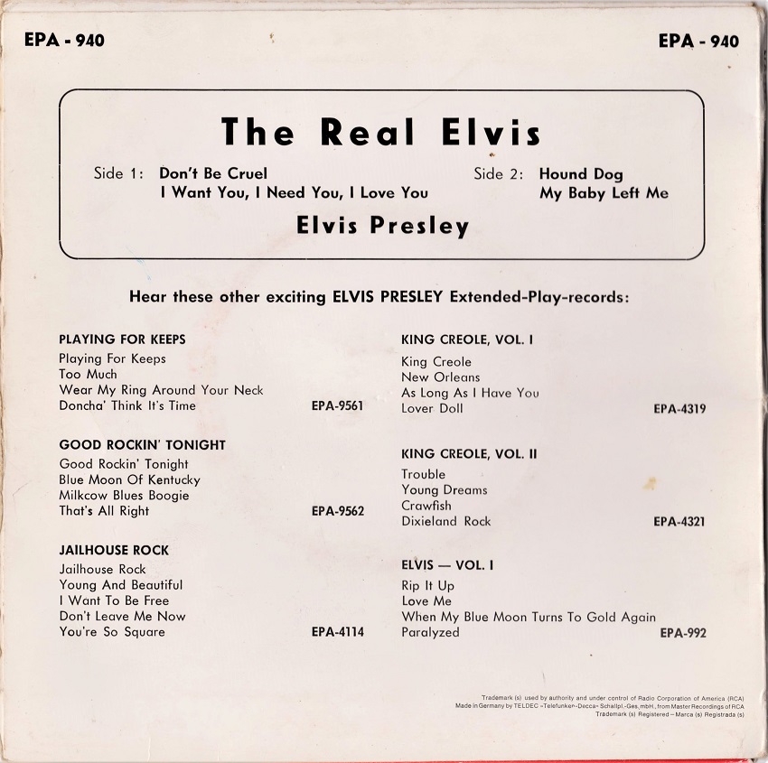 die EPA-940 wurde mit Songs aus dem Jahr 1956 im Jahre 58 veröffentlicht.