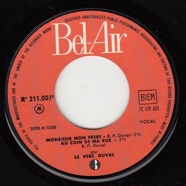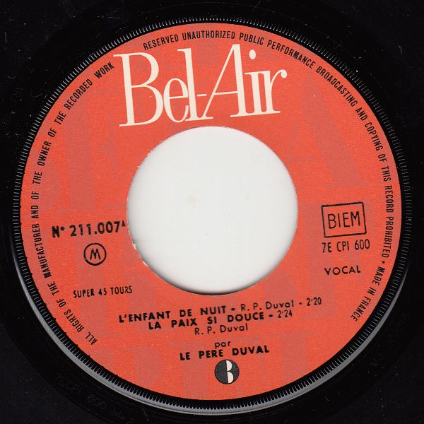 ?? 60....N° 211.007A....par LE PERE DUVAL..L'enfant de nuit - La paix si douce (7E CPI 600)/B....Monsieur mon frère - Au coin de ma rue (7E CPI 601)