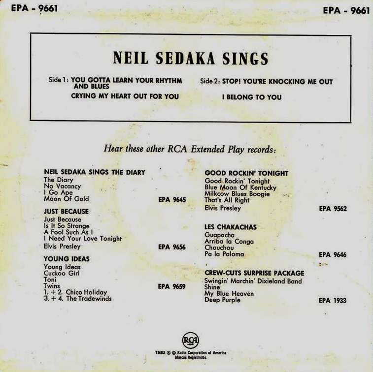 Neil Sedaka / Deutsche RCA EP : EPA 9788 / Calender Girl + 3