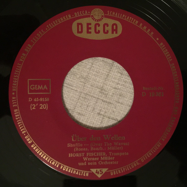 Für Horst Fischer's DECCA Single D 19 381 mit dem Titel-Aufdruck "Über den Wellen", gab es eine zweite Hülle mit dem Titel-Aufdruck "Donau-Wellen". Siehe dazu die Scans aus dem Netz. Leider kann ich nicht sagen, ob es auch dementsprechende Label-Aufdrucke gab.