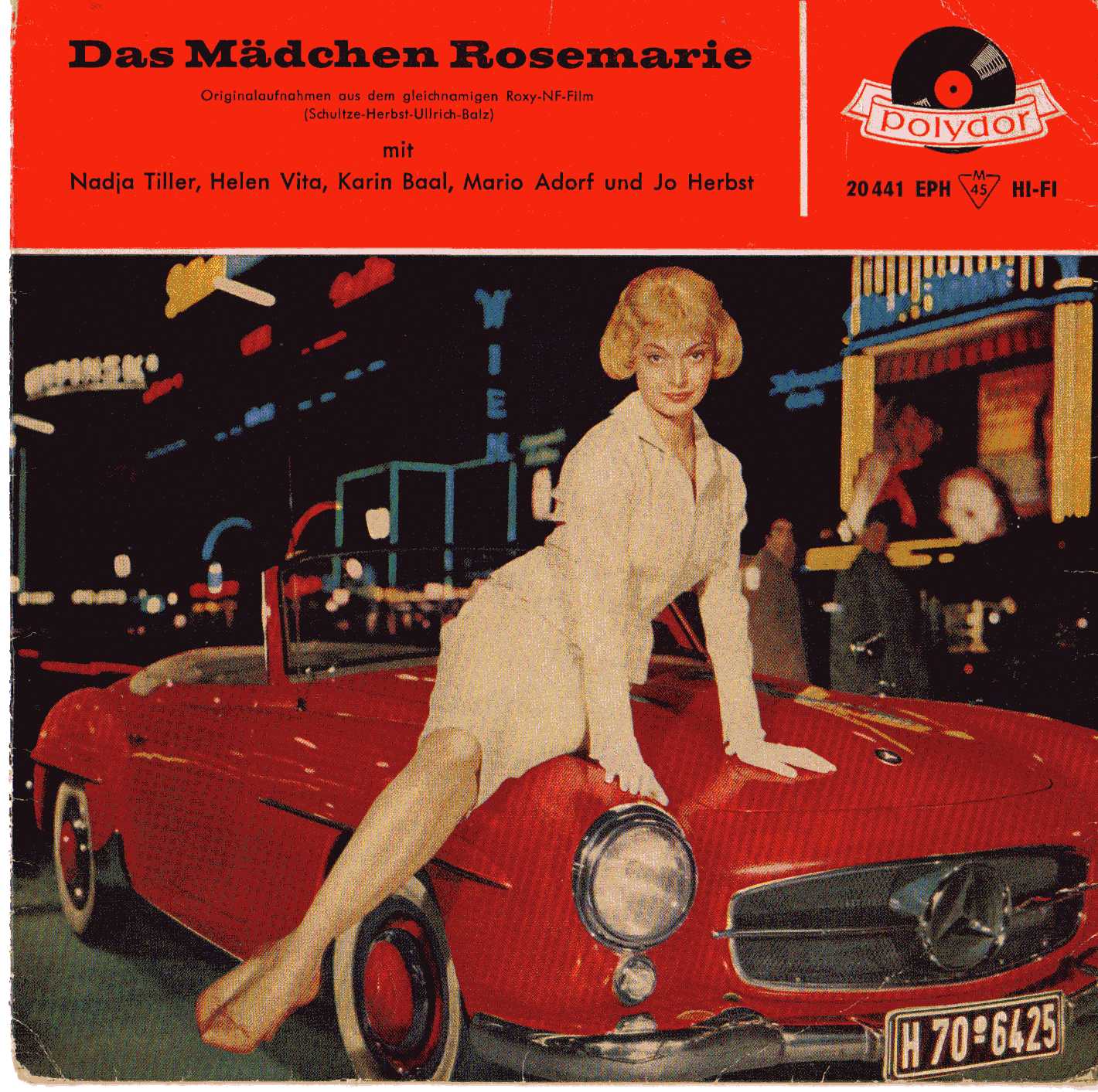 Das tolle Farbcover der Polydor EP 20441 mit dem Mercedes 190SL enthält die Originalaufnahmen aus dem Film. Die zweite EP wurde auf dem Austroton Label mit der Best.-Nr. 1218 veröffentlicht und enthält ein Potpourri aus dem gleichnamigen Film.