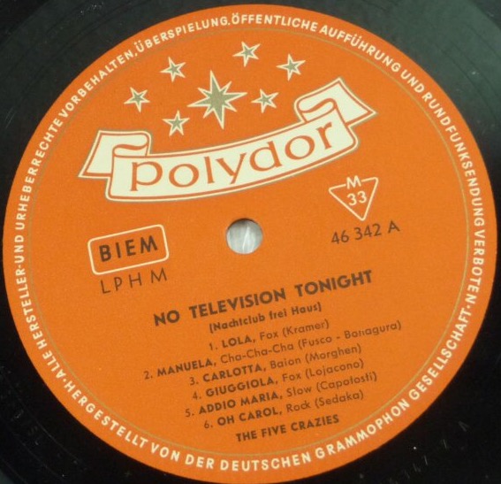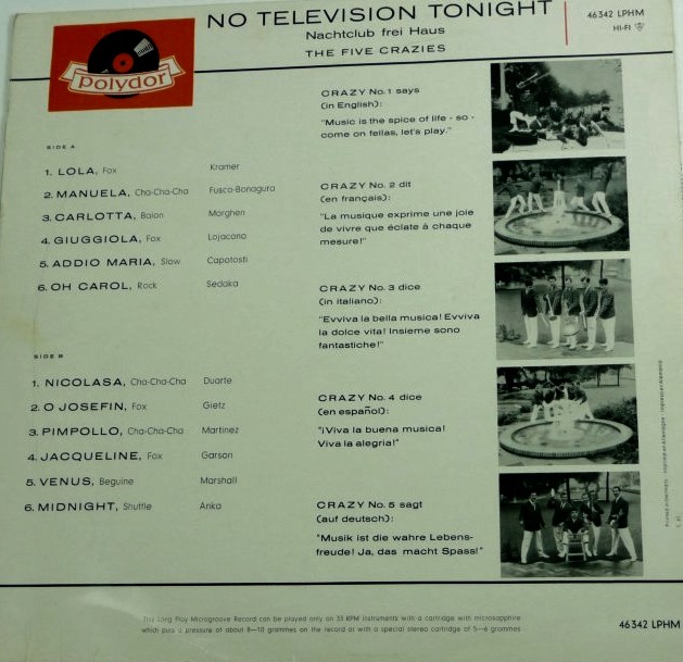 Diesmal bin ich einmal faul. Ich stelle lediglich die Five Crazies mit ihrem Sänger Pino di Nara zur Diskussion.
