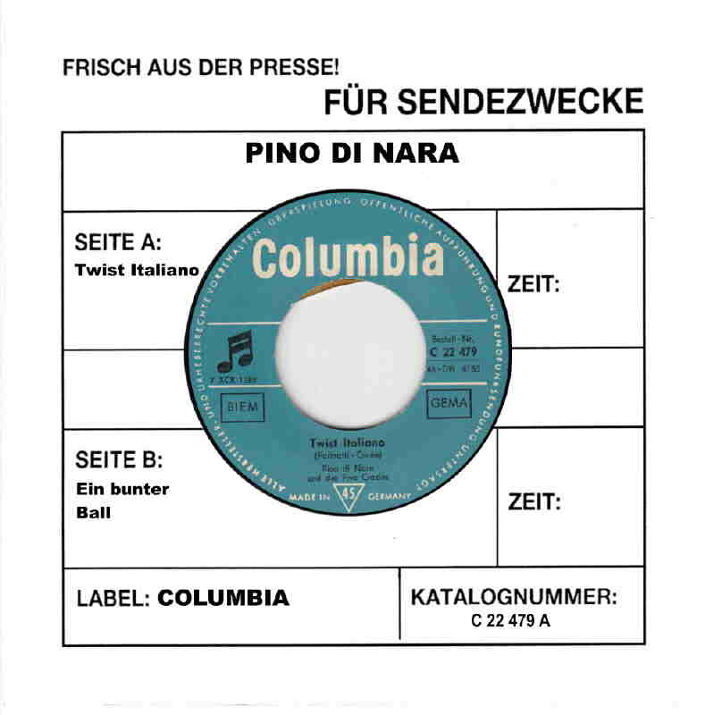 07 63....C 22 479....Pino di Nara und die Five Crazies..Ein bunter Ball/Twist Italiano