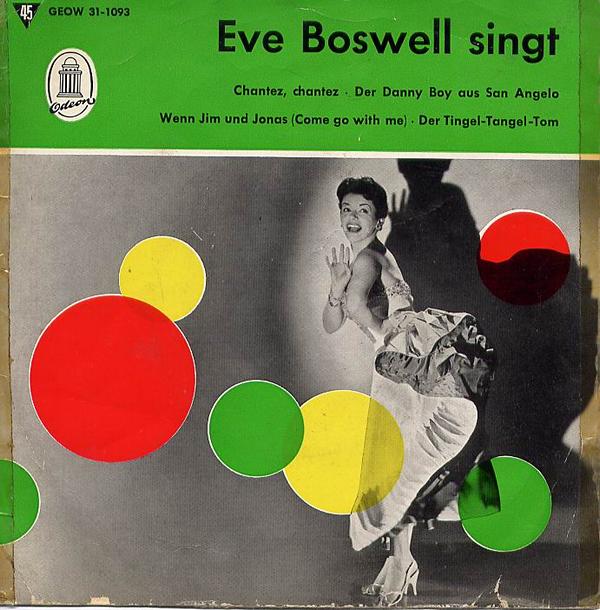 Eve Boswell hatte ihre größten Erfolge in England und Süd-Afrika. Die Sängerin wurde in Ungarn geboren und hat eine Zeit in der Schweiz gelebt. Ihre bekanntesten Hits in den 50er Jahren waren "Sugar Bush" und "Pickin' a Chicken". Die hier abgebildete Scheibe ist wunderbarer deutscher Rock-A-Billy. Wenn auch schwer zu finden: wer die Platte einmal in die Finger bekommt, sollte unbedingt zugreifen. Begleitet wird Eve Boswell vom Paul Kuhn Ensemble.
