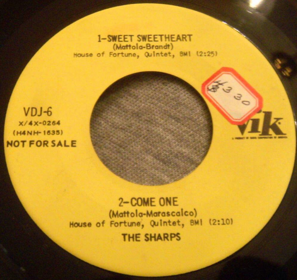 ?? 55....M-107....FOUR SHARPS Bass—Tony Liuzza Accordian—Johnny Feilden Drums—Lou Castillo Piano—Riki Saunders - Vocal Featuring Riki Saunders..Crazy Mixed Up Heart (1006-45)/Moonlight Serenade (1007-45)