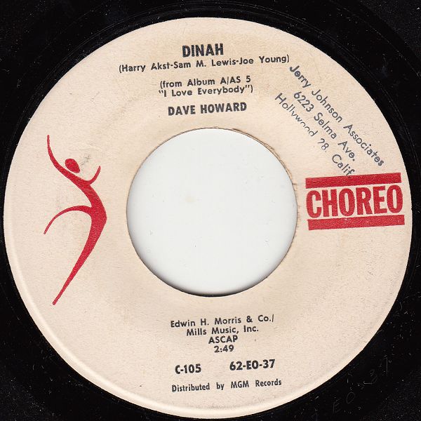 ?? 62....C-105....DAVE HOWARD..Dinah (62 EO 37)/Mister Female Crazy (62 EO 38 )