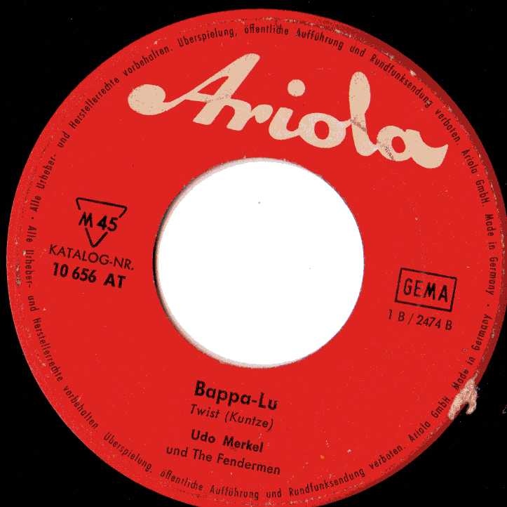 vor einiger Zeit fiel mir eine Single in die Hand die ich Euch nicht vorenthalten will. Zwei Twistnummern von Udo Merkel mit Gitarrenbegleitung von The Fendermen.