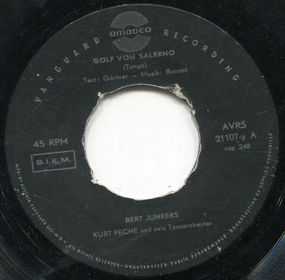 Obwohl ich Wiener bin, sagt mir Bert Junkers so gut wie nichts was wohl daran liegt, dass uns seinerzeit deutschsprachige Schlager kaum interessierten. Seine Begleitbands lassen aber nur den Schluß zu, dass er, wenn er doch nicht aus Wien stammen sollte, zumindest seine Aufnahmen hier einspielte.